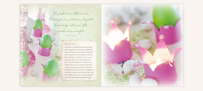 Sie zeigt mit ihren kreativen Ideen, dass das erstrebte Glück oft so nahe liegt. Aber besonders auch in der Gemeinschaft mit dem Schöpfer gefunden wird. Dabei berichtet sie von persönlichen Erfahrungen und vertieft diese mit geschmackvollen Deko-Anregungen, die Lust wecken, einmal selbst kreativ zu werden.