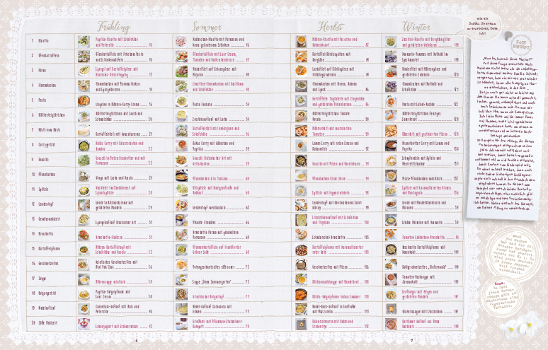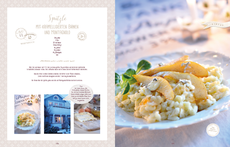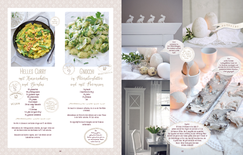Deshalb zeige ich Euch meine Dekoideen für Küche und Esstisch im Lauf eines Jahres und verrate Euch mein Kochkonzept für den Alltag: 20 einfache Rezepte, die je nach Jahreszeit raffiniert variiert werden, damit keine Langeweile aufkommt, und so viel Routine entsteht, dass einem alles leicht von der Hand geht und hier bereits das Genießen beginnt. Vielleicht gibt Dir dieses Buch den Anstoß, Deine kleine heile Welt zu entdecken und aufzubauen oder weiter auszugestalten."