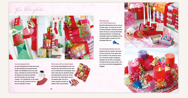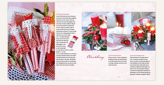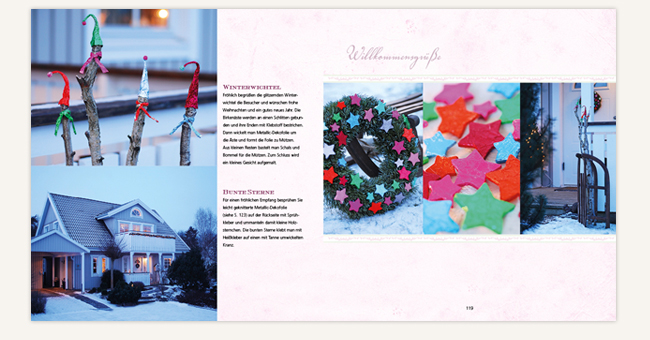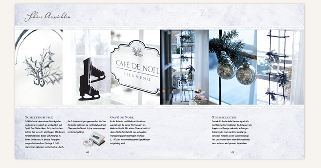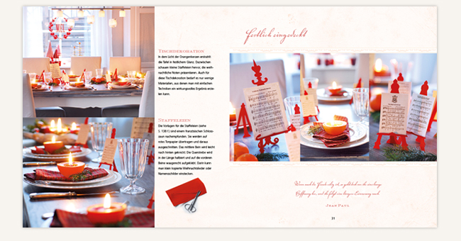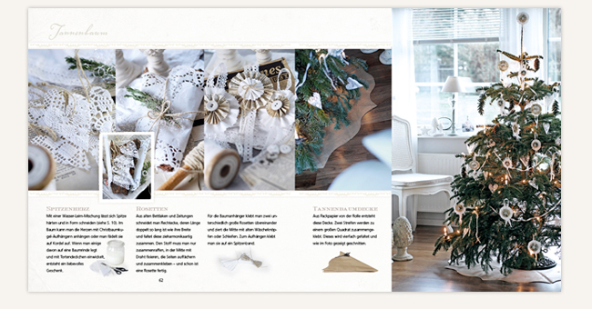 Imke Johannson entführt in fünf farblich verschiedene Weihnachtswelten und leitet an, wie man aus einfachen Materialien stilvolle Dekorationen kreieren und ohne großen Aufwand unterschiedliche Stilwirkungen erzielen kann: