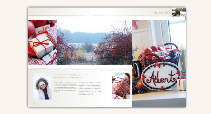 Bei ihren täglichen Spaziergängen mit ihrem Hund hat sich Imke Johannson jeden Monat aufs Neue von der Natur inspirieren lassen. Diese wechselnden Eindrücke hat sie in diesem Buch festgehalten, so dass Sie sich mit ihr gemeinsam auf einen Spaziergang durchs Jahr machen können. Jedes Kapitel fängt den Reiz des jeweiligen Monats ein und zeigt gleichzeitig neue, stilvolle Dekorationen, größtenteils mit bebilderten Anleitungen. Hübsches Detail ist auch das Daumenkino, mit dem Sie im Schnelldurchlauf die Jahreszeiten erleben können.